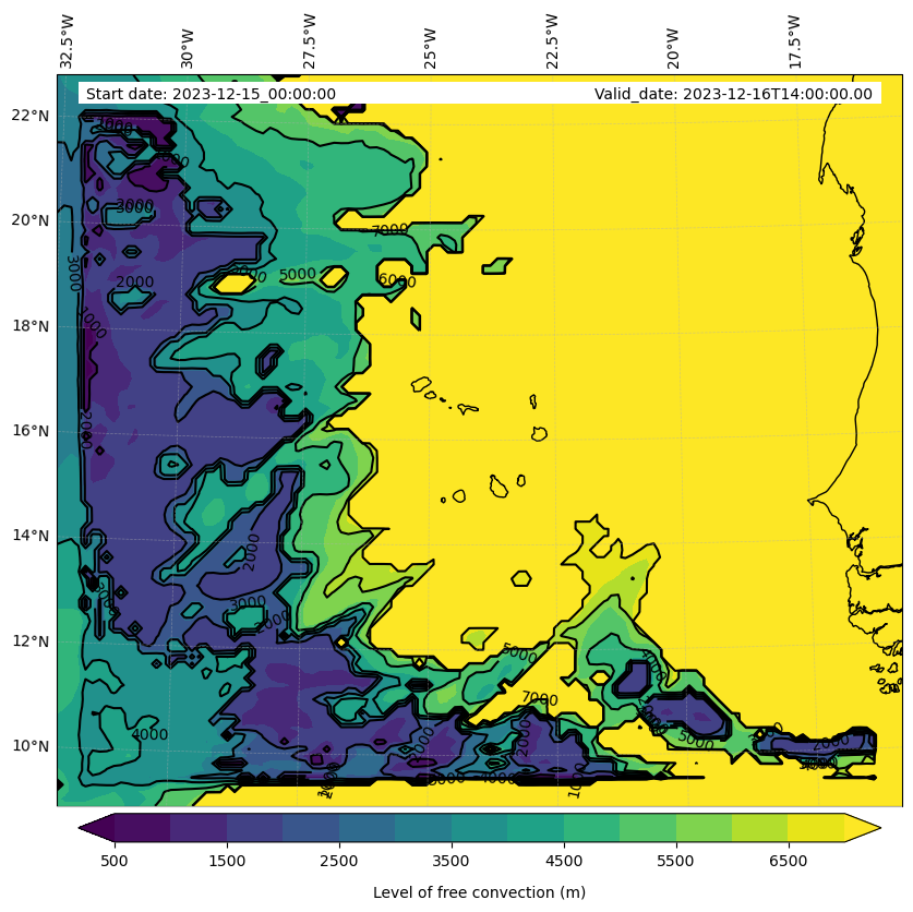 - Level of free convection (m)