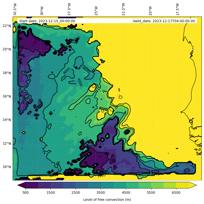 - Level of free convection (m)