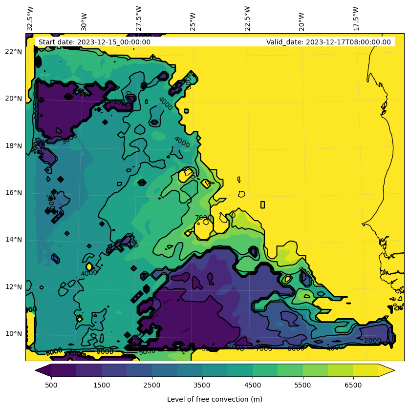 - Level of free convection (m)