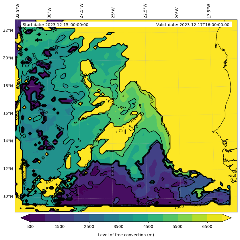 - Level of free convection (m)