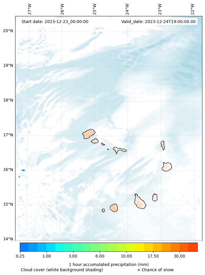 - Snow mixing ratio (g kg¯¹)