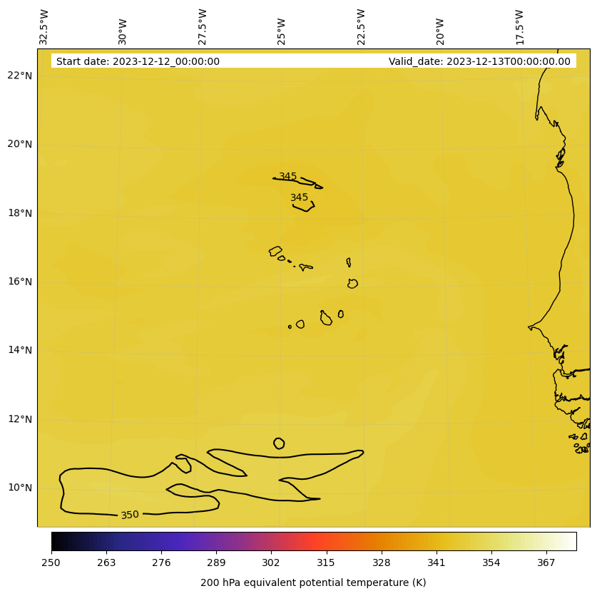 - Equivalent Potential Temperature (K)