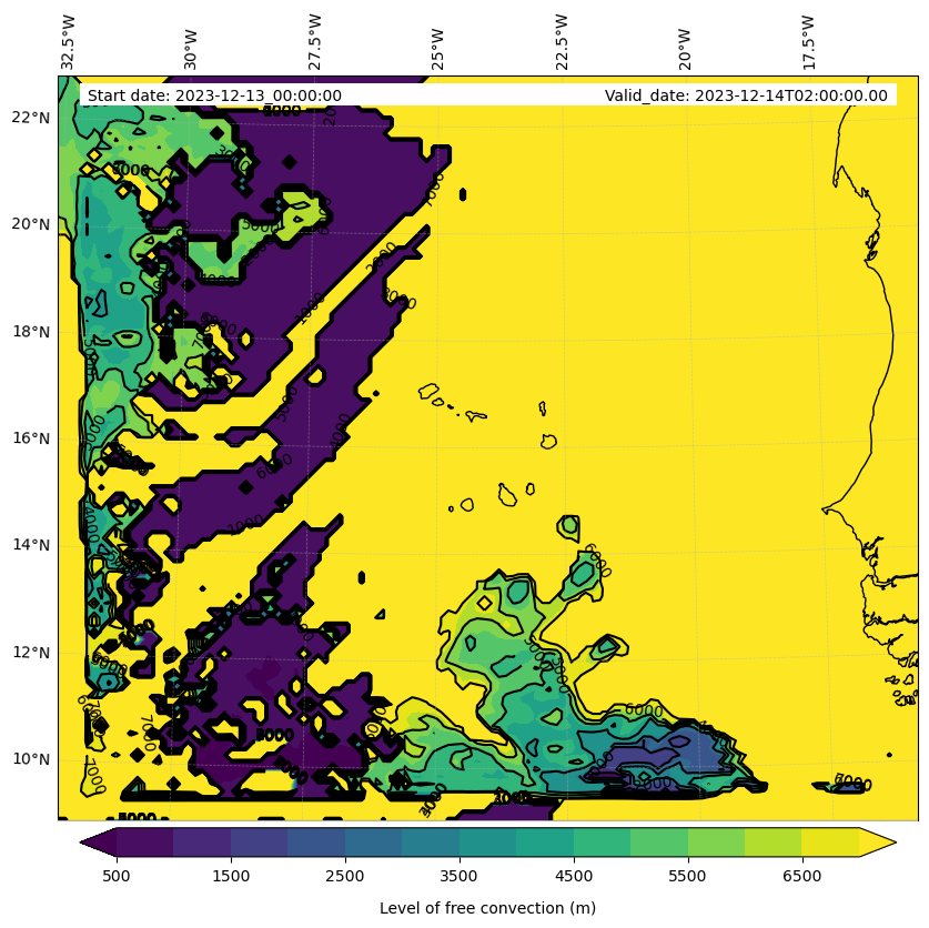 - Level of free convection (m)
