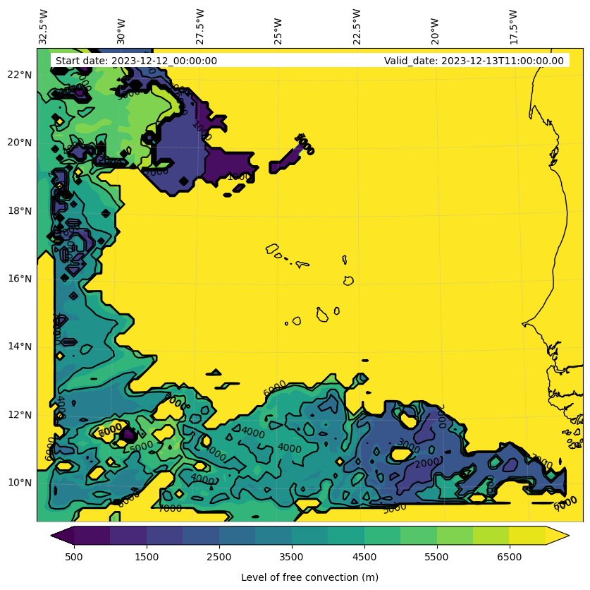 - Level of free convection (m)
