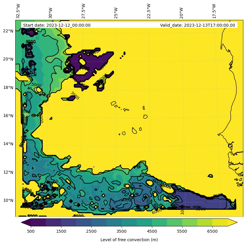 - Level of free convection (m)