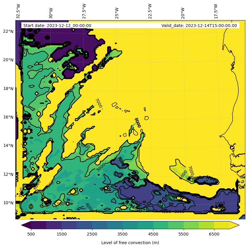 - Level of free convection (m)