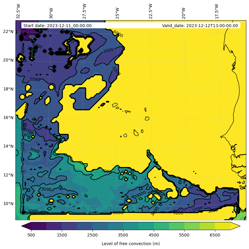 - Level of free convection (m)