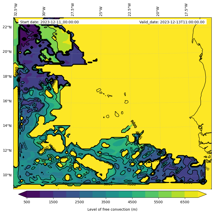 - Level of free convection (m)