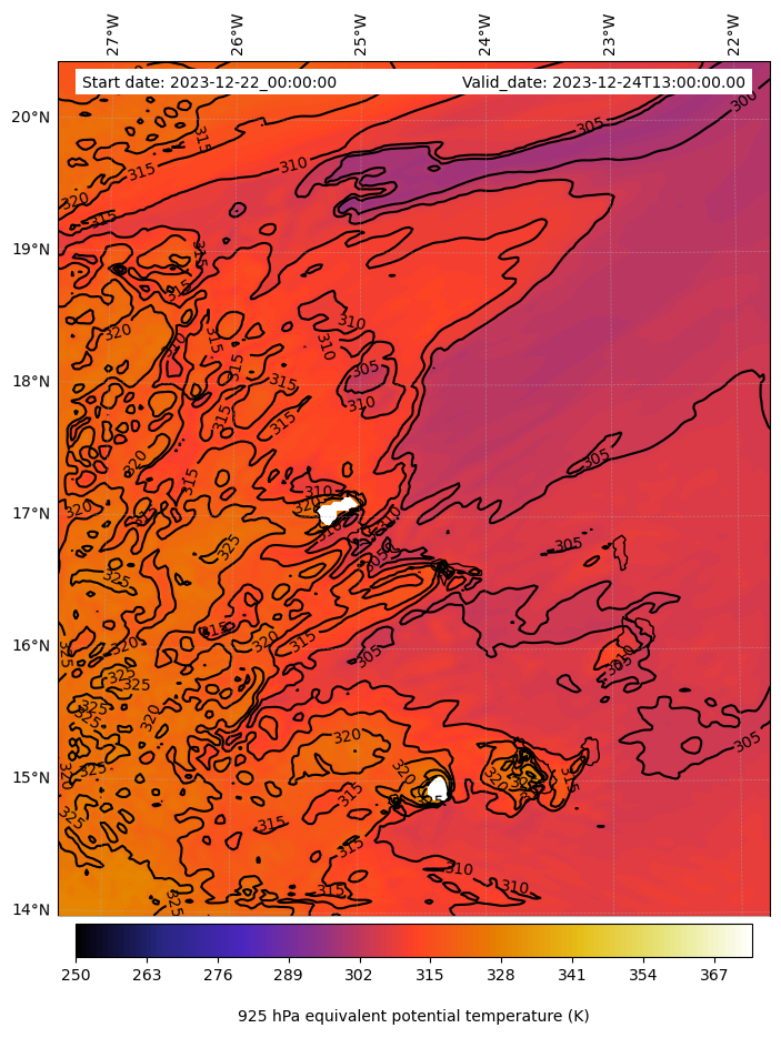 - Equivalent Potential Temperature (K)
