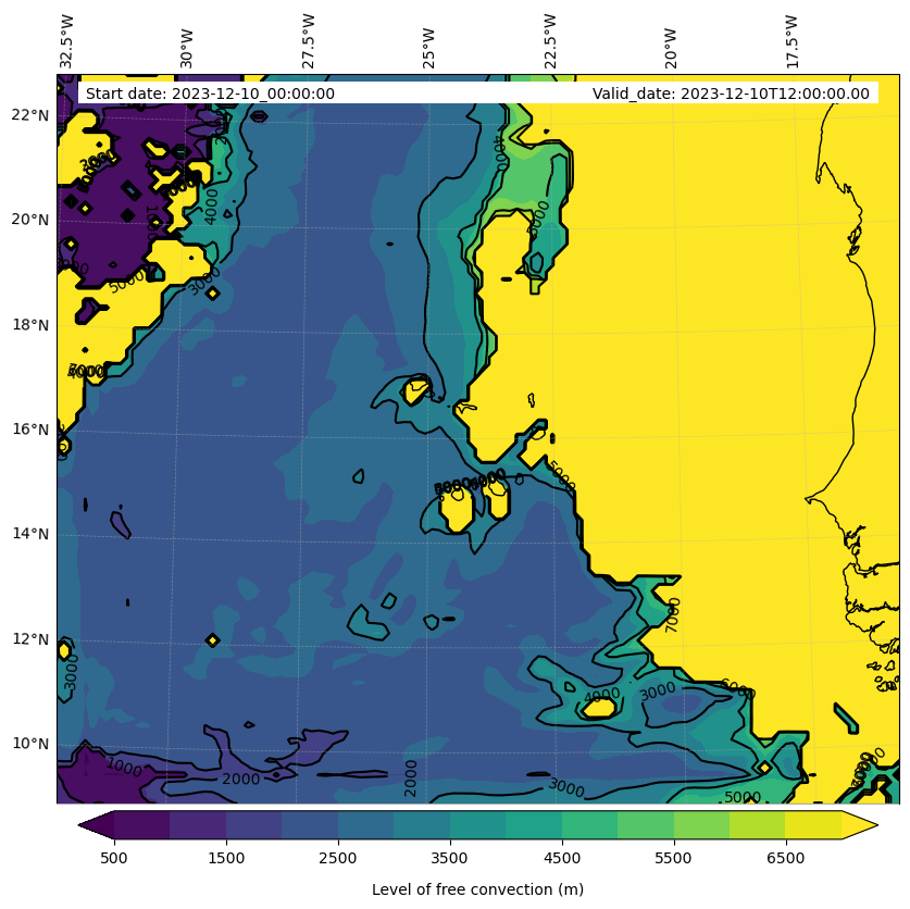 - Level of free convection (m)