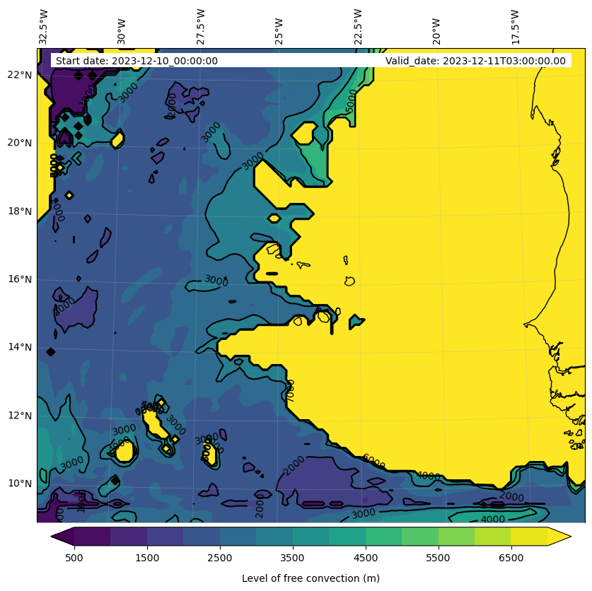 - Level of free convection (m)