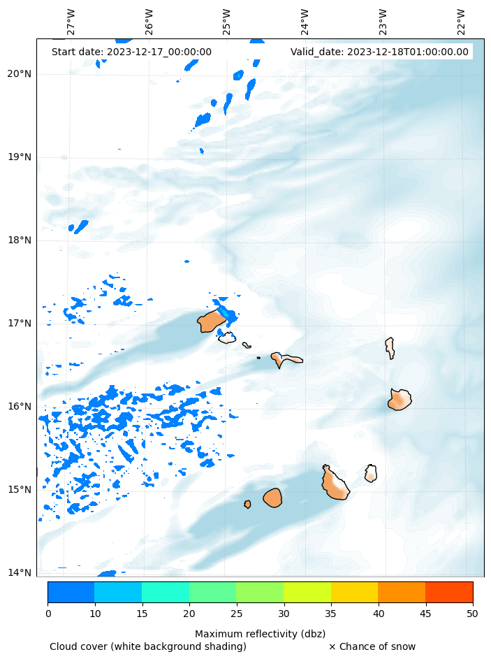 - Snow mixing ratio (g kg¯¹)