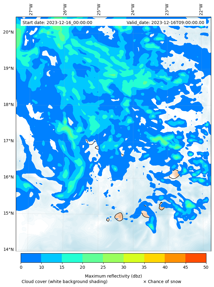 - Snow mixing ratio (g kg¯¹)