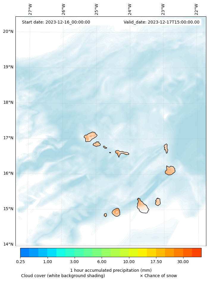 - Snow mixing ratio (g kg¯¹)