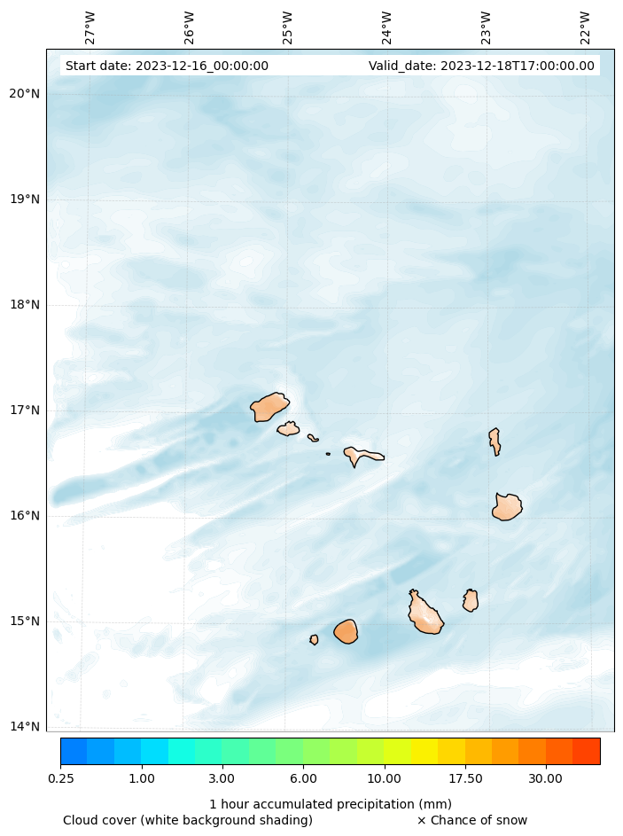 - Snow mixing ratio (g kg¯¹)