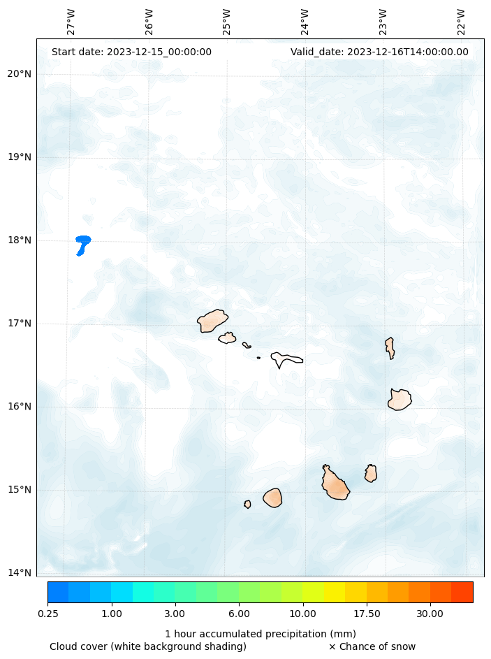 - Snow mixing ratio (g kg¯¹)