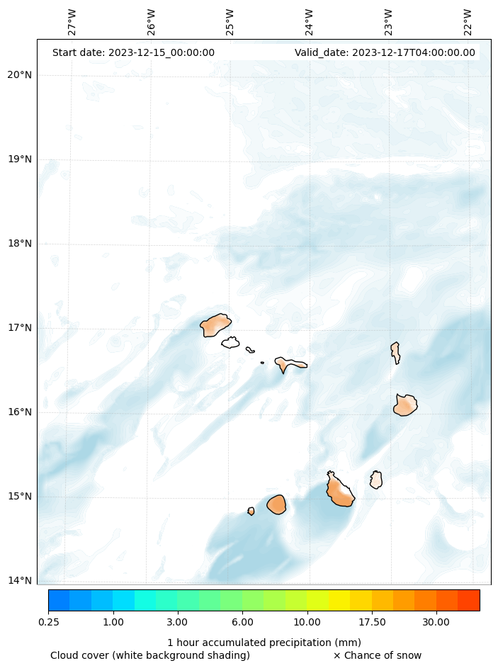 - Snow mixing ratio (g kg¯¹)