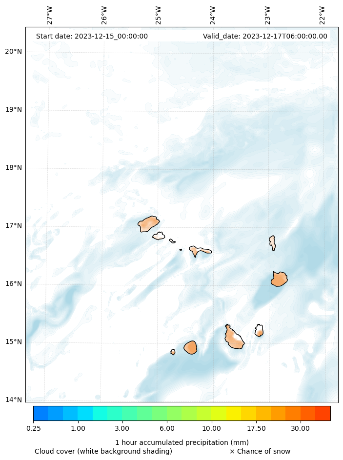 - Snow mixing ratio (g kg¯¹)