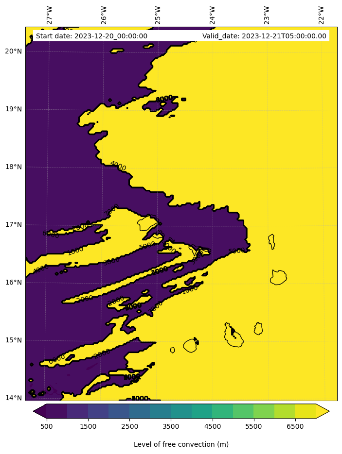 • Level of free convection (m)
