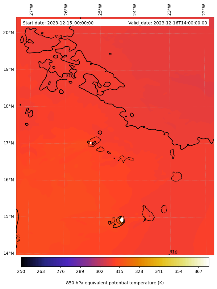 - Equivalent Potential Temperature (K)