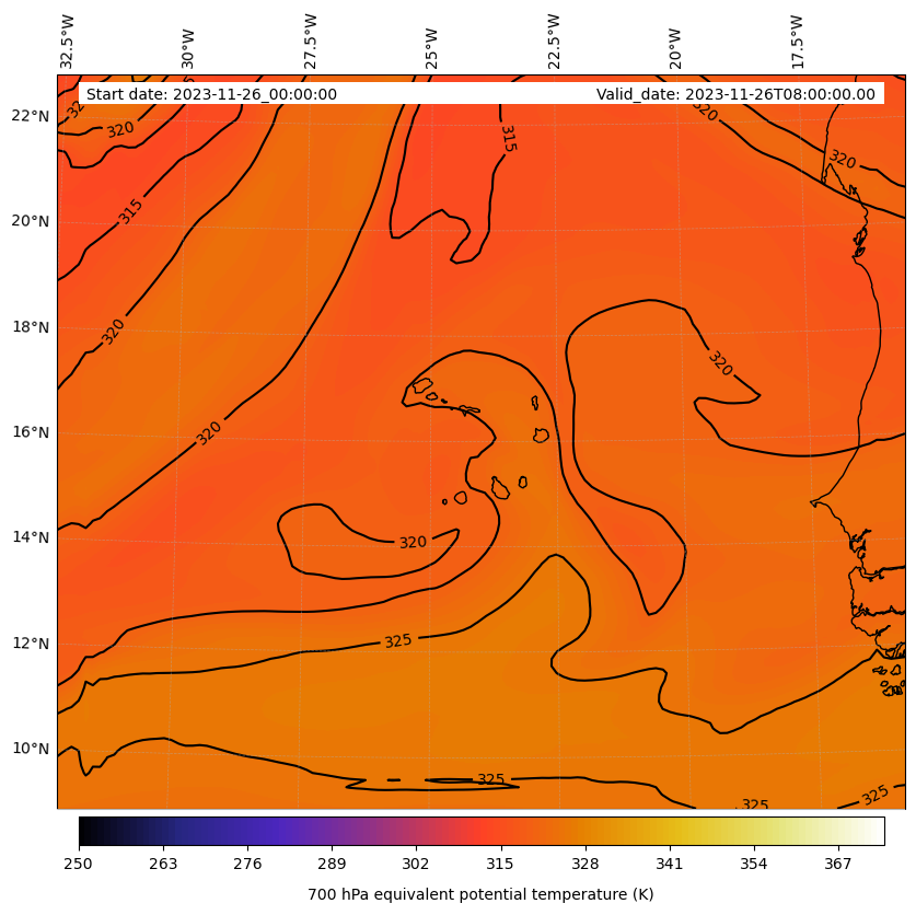 - Equivalent Potential Temperature (K)