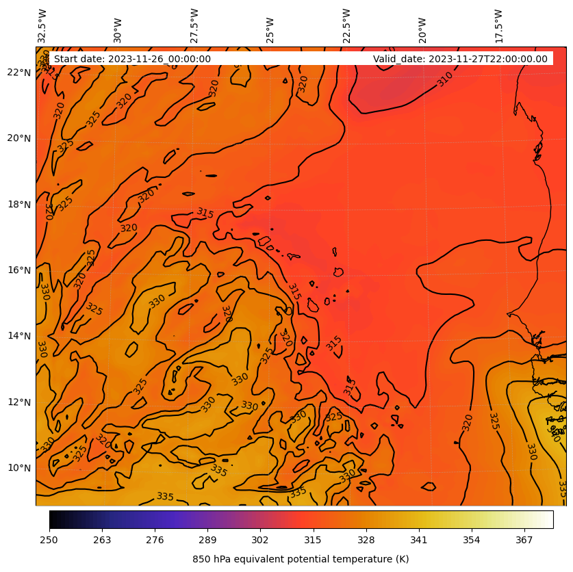 - Equivalent Potential Temperature (K)