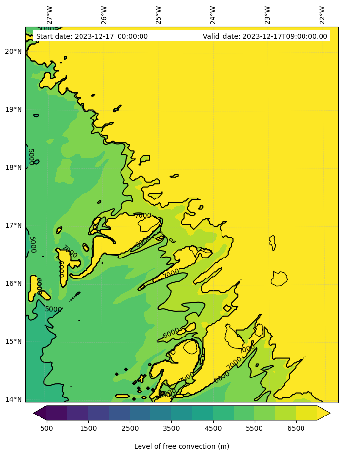 - Level of free convection (m)