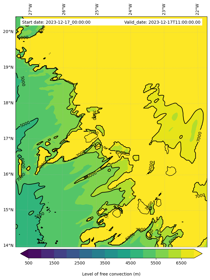 - Level of free convection (m)