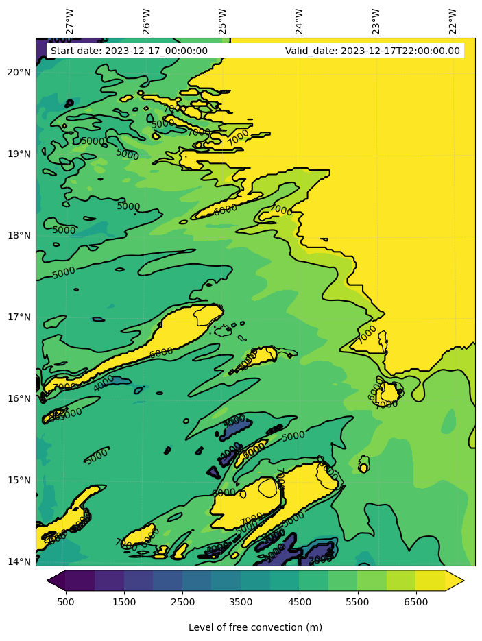 - Level of free convection (m)