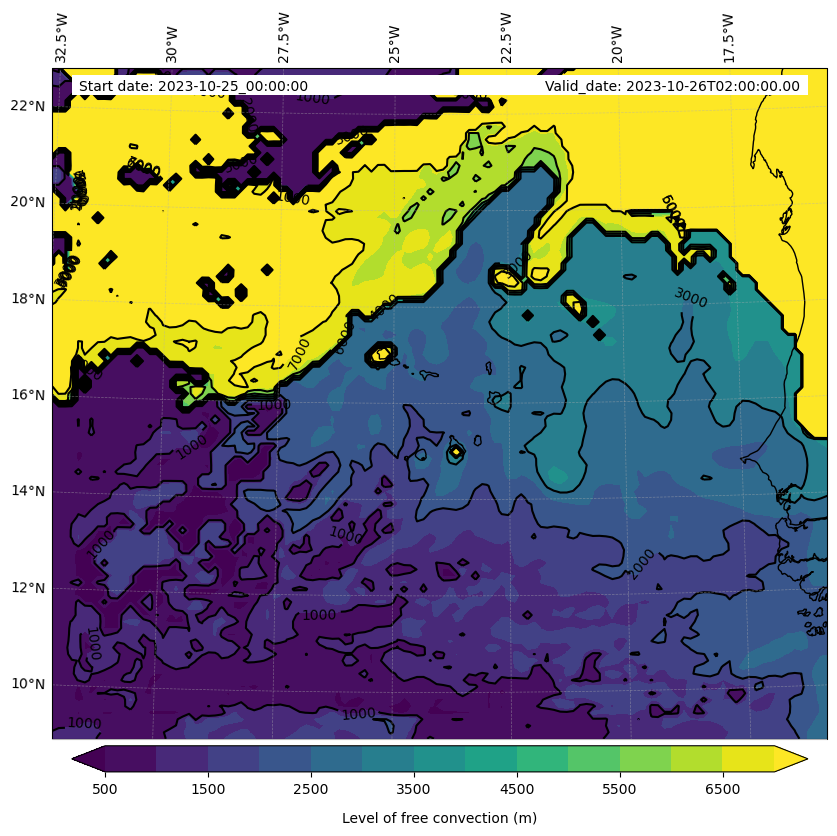 - Level of free convection (m)