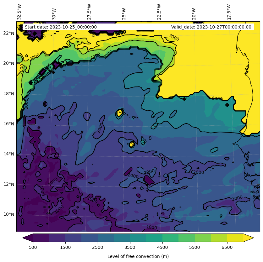 - Level of free convection (m)