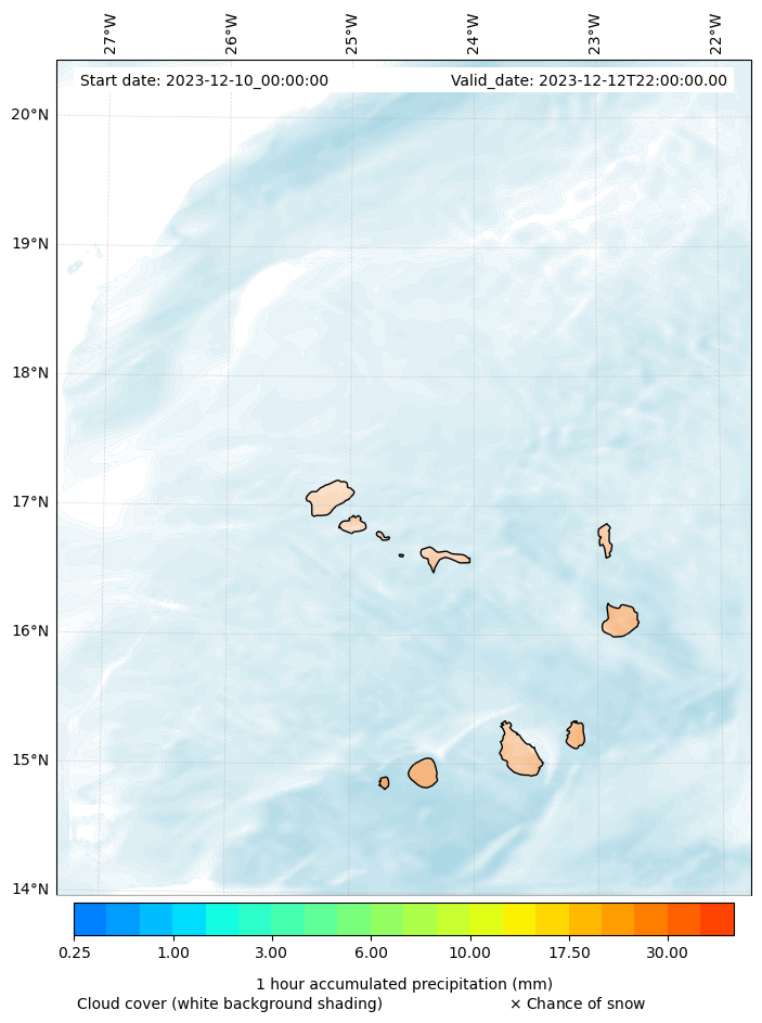 - Snow mixing ratio (g kg¯¹)