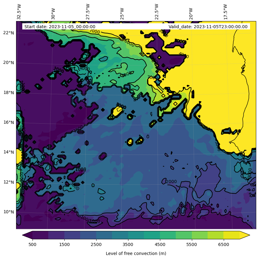 - Level of free convection (m)