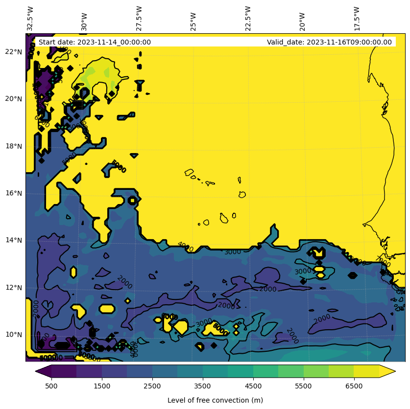 - Level of free convection (m)