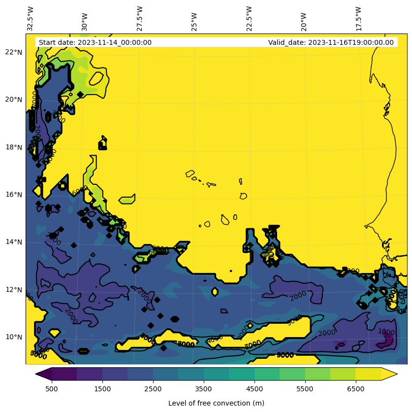 - Level of free convection (m)