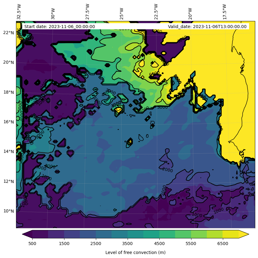 - Level of free convection (m)