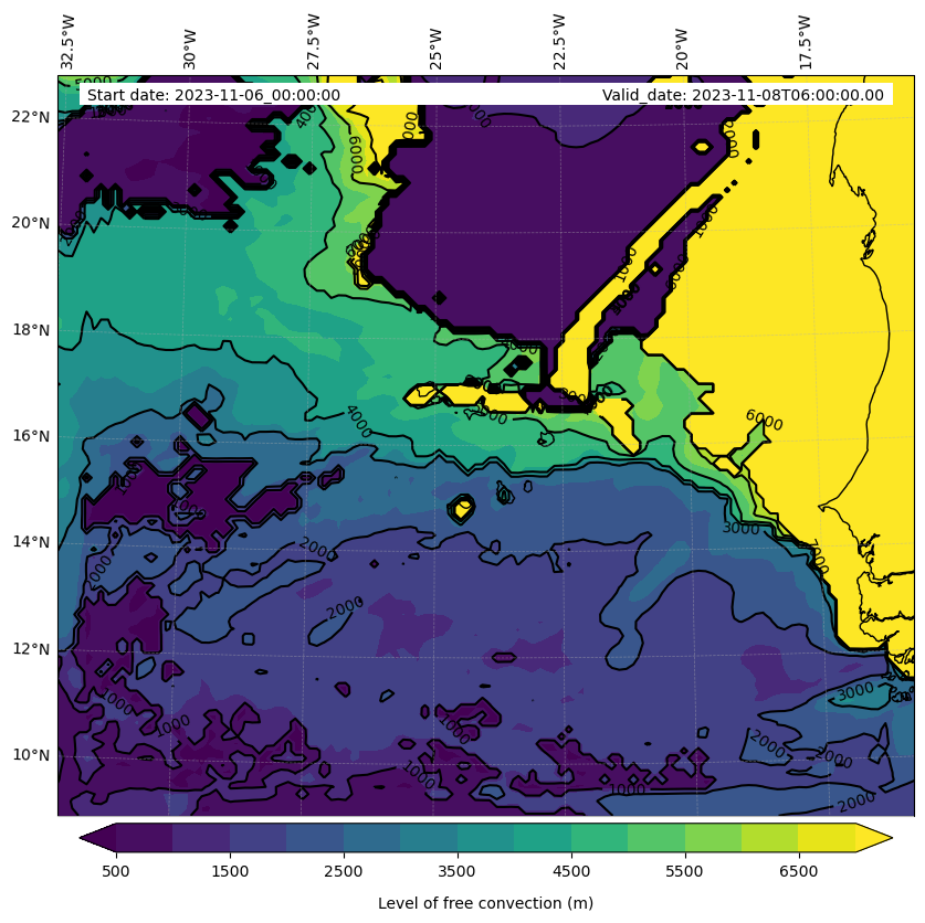 • Level of free convection (m)