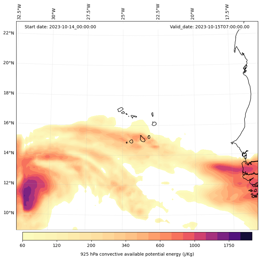 - Maximum CAPE (J/Kg)
