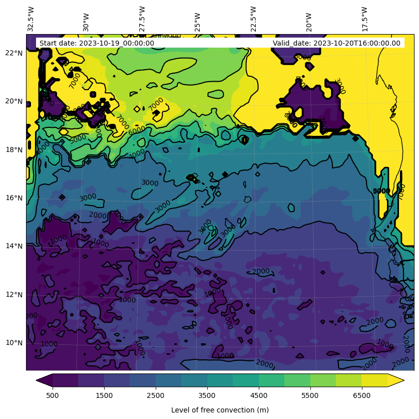 - Level of free convection (m)