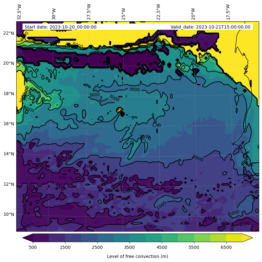 - Level of free convection (m)