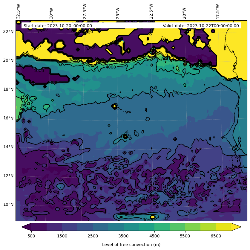 - Level of free convection (m)