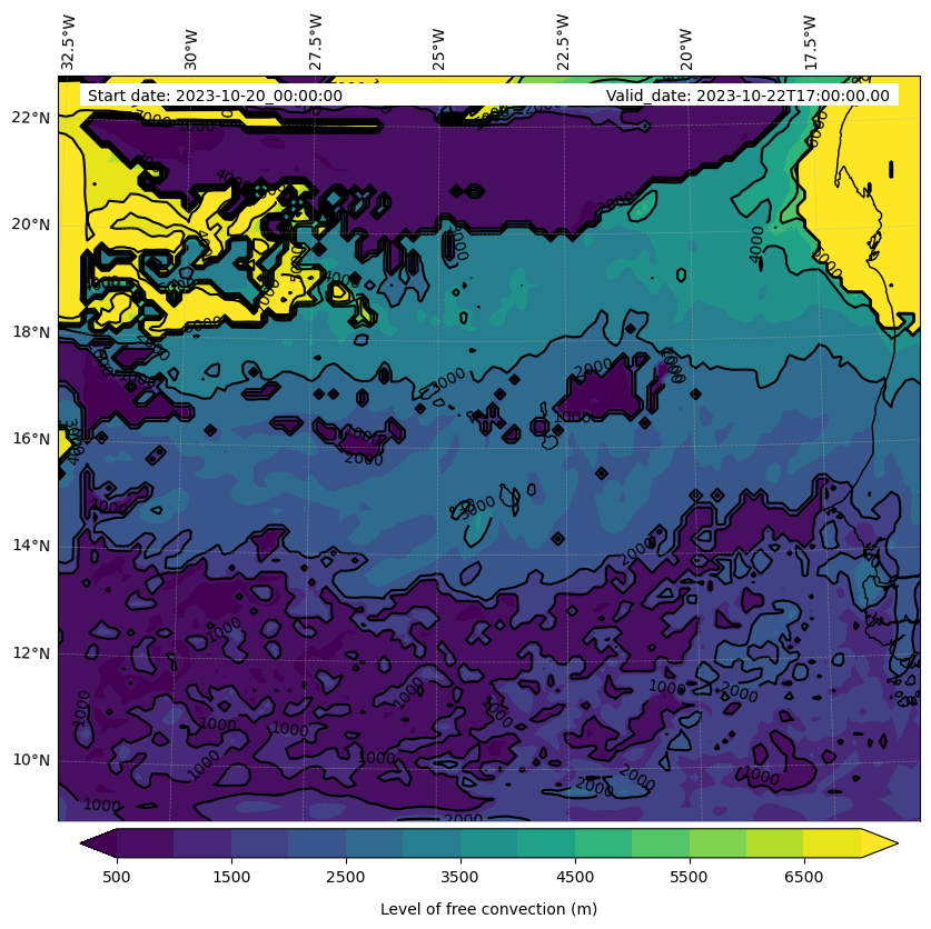 - Level of free convection (m)