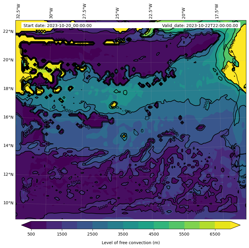 - Level of free convection (m)