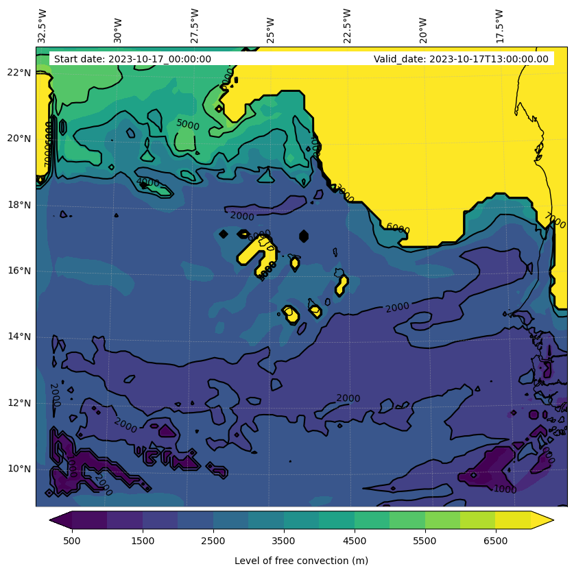 - Level of free convection (m)
