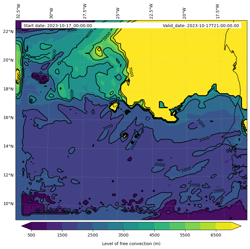 - Level of free convection (m)