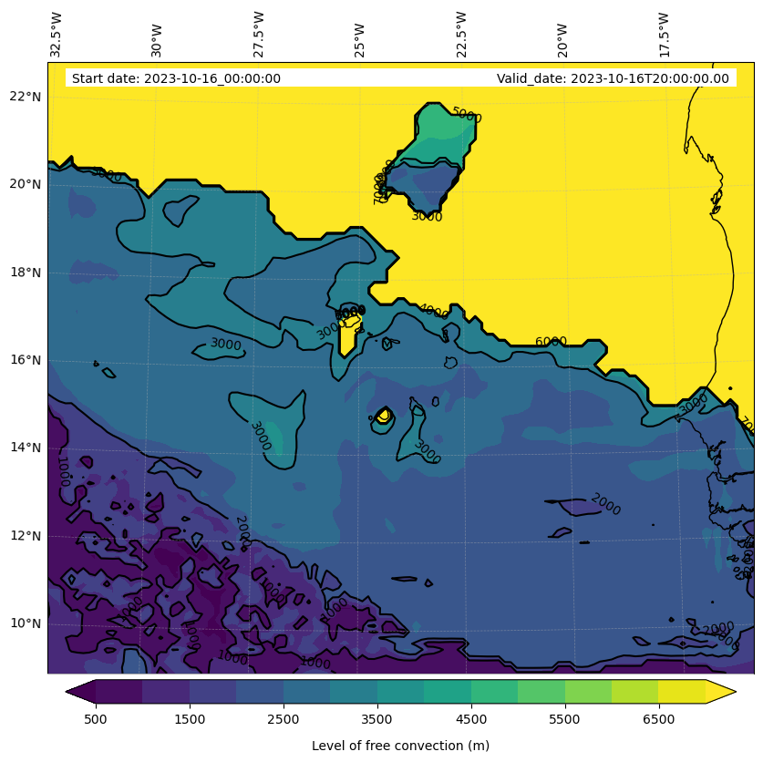 - Level of free convection (m)