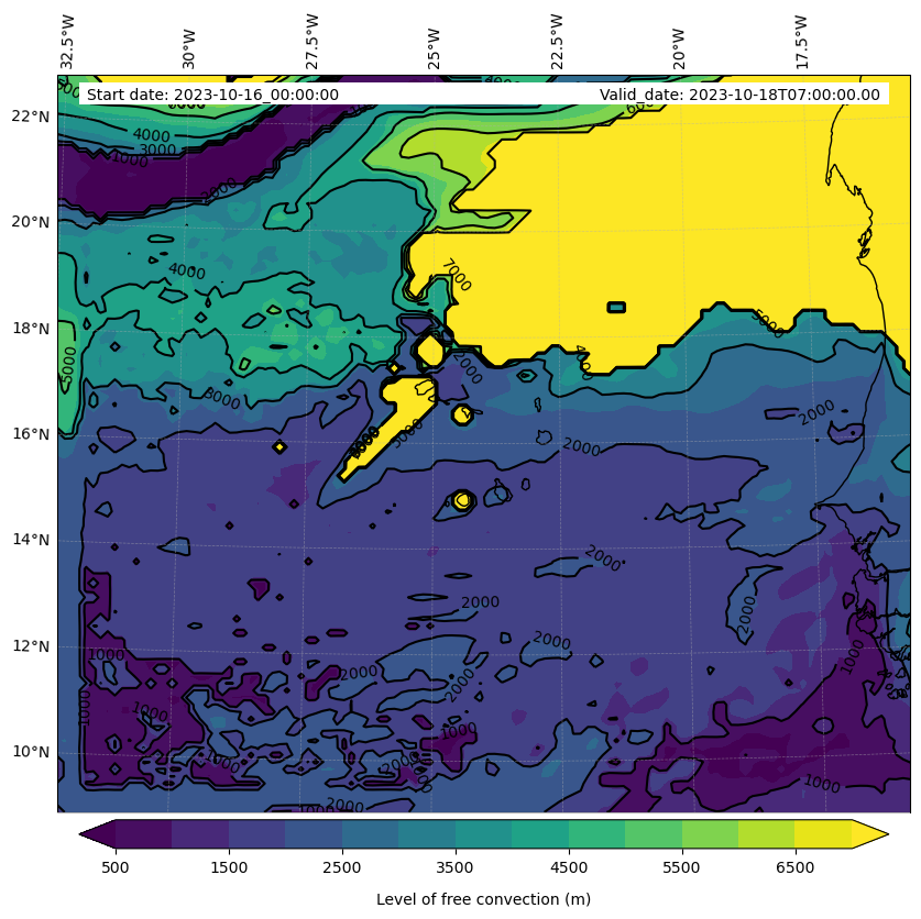 - Level of free convection (m)