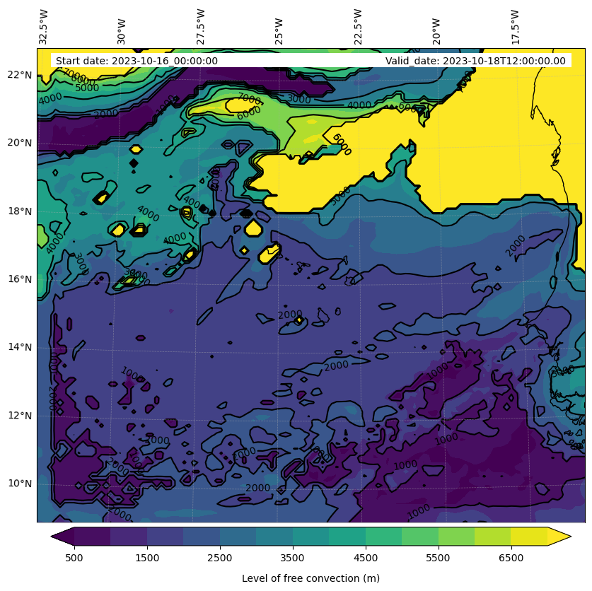 - Level of free convection (m)