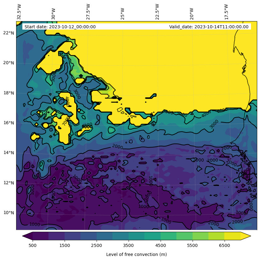 - Level of free convection (m)
