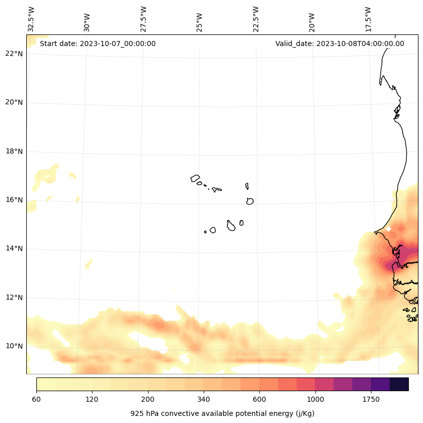 - Maximum CAPE (J/Kg)